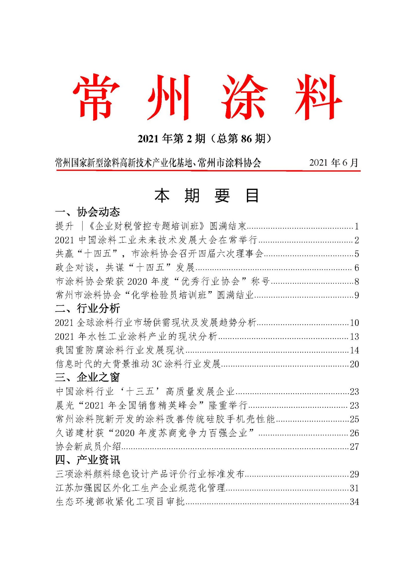 常州涂料簡報2021年第2期(總第86期)